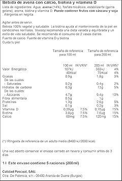 Desglosando Leche de avena ingredientes